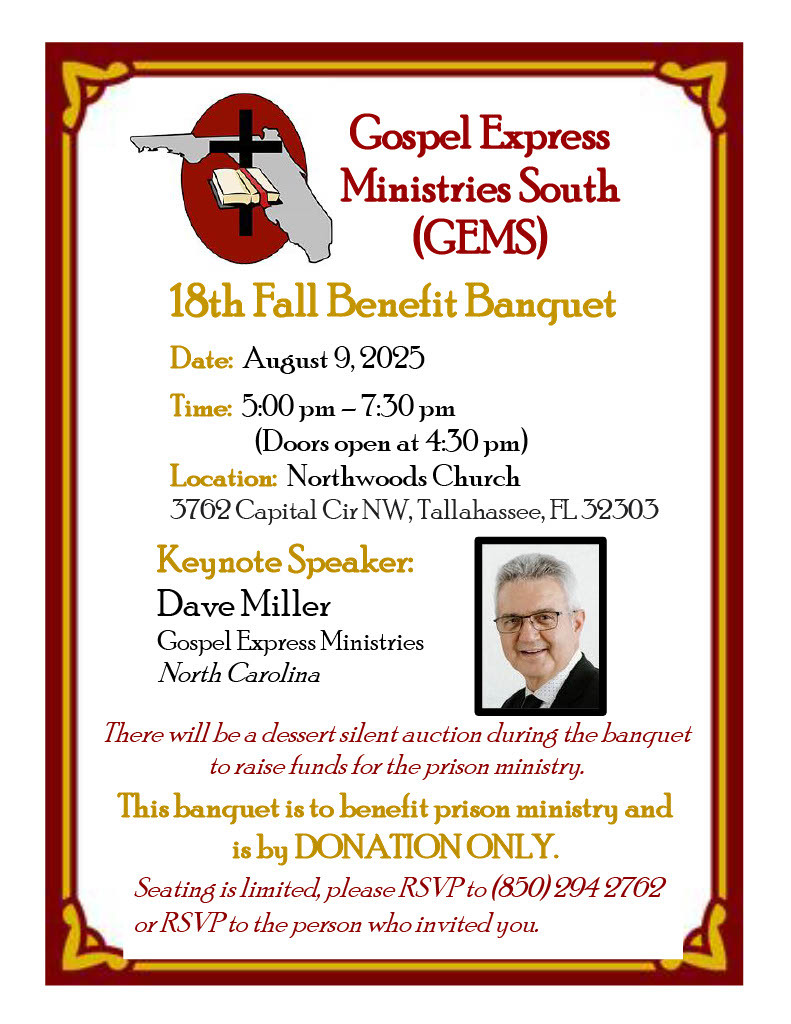 Your gift allows GEMS Missionary Chaplains to share God’s Word with inmates!